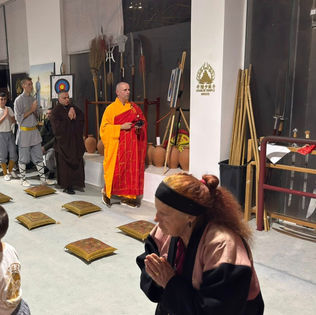 Στις 18:30 άνοιξαν οι πόρτες του κέντρου και ο Δάσκαλος Shi Yan Xiang 释延向法师 υποδέχθηκε προσωπικά τους παρευρισκόμενους, προσφέροντας ευχές για καλή χρονιά και εσωτερική πρόοδο. Η ατμόσφαιρα ήταν ζεστή και εορταστική, με κόκκινα διακοσμητικά στοιχεία – σύμβολα τύχης και ευημερίας σύμφωνα με την Κινεζική παράδοση.